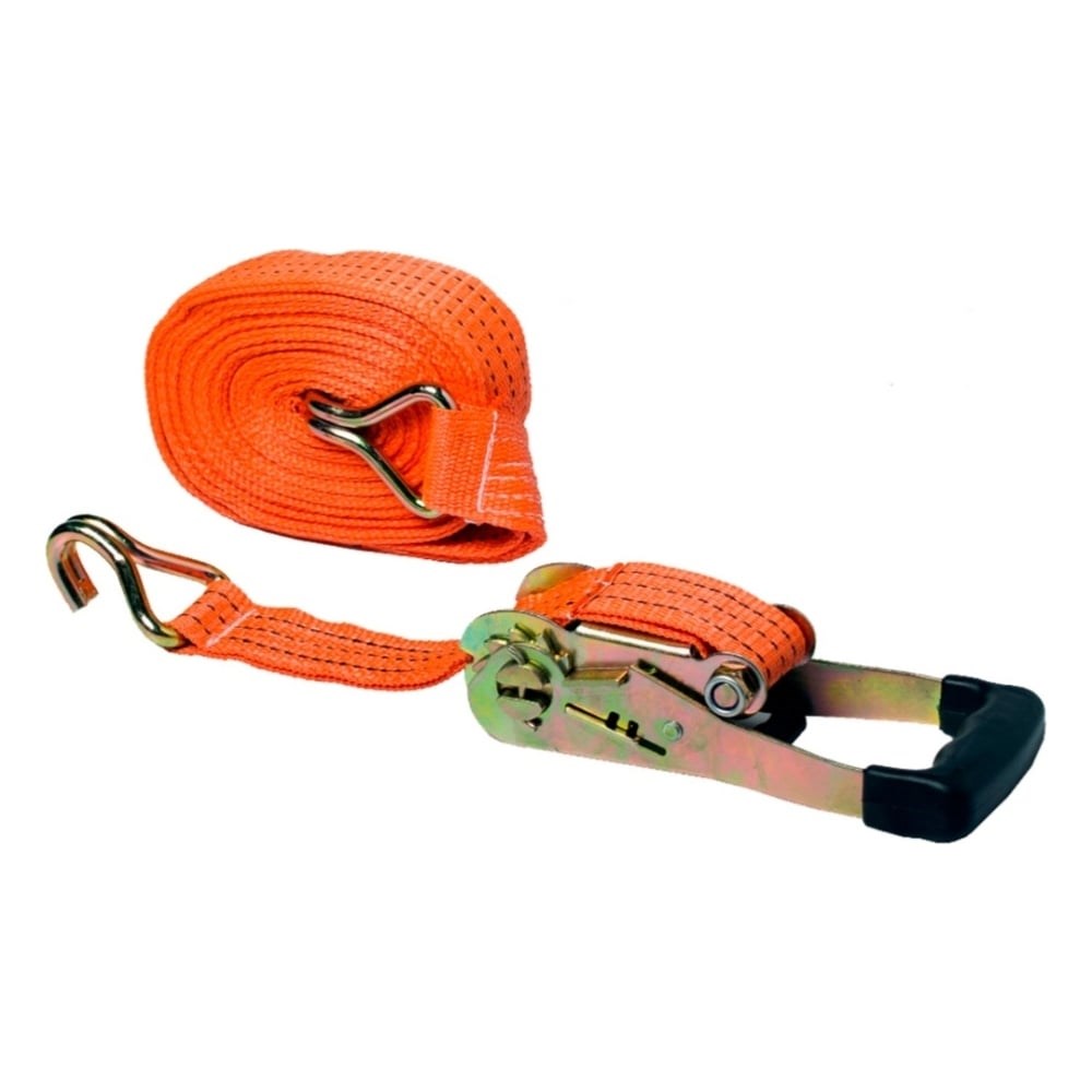 Стяжной ремень Avto Vins euro strong, 12 м, 50 мм, 5000 кг 7032398 поможет надежно зафиксировать перемещаемый груз и сохранить его целостность. В устройстве используется полипропиленовая лента с мультифиламентной нитью высокой прочности. Благодаря такому составу материал ленты обладает устойчивостью к растяжению и разрыву, стоек к атмосферным воздействиям. Храповой механизм предотвращает ослабление натяжения ленты, благодаря чему Ваш груз будет надежно зафиксирован. Ширина ремня 50 мм, длина ремня 12 м. Стяжное усилие - 5 тонн. Храповой механизм в комплекте.