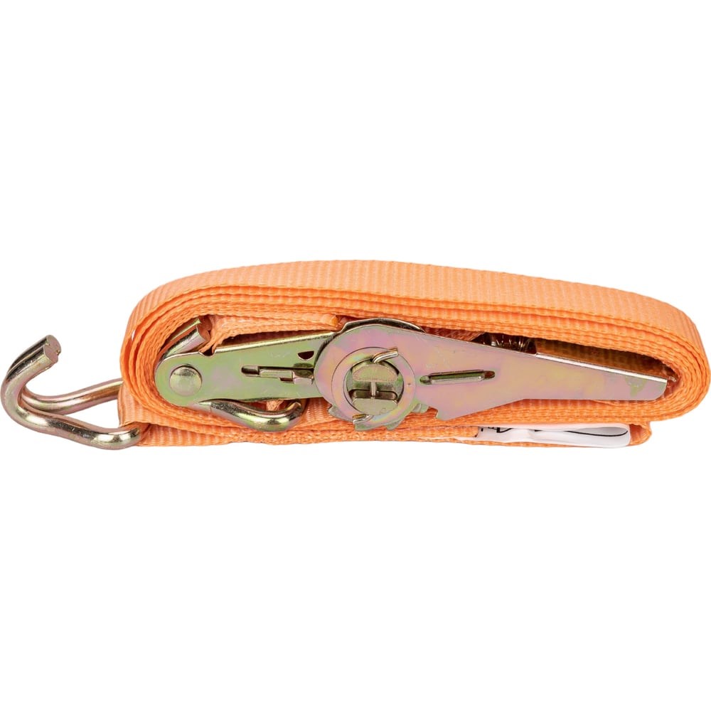 Стяжной ремень СК 0,8/1,6 т, 3 м, лента 25 мм CK1RST.00800.001608 применяется для фиксации грузов при перевозке на автомобилях, эвакуаторах и другом транспорте. Ремень изготовлен из текстильной ленты. Материал рассчитан на эксплуатацию в любых погодных условиях. Изделие надежно закрепляет транспортируемые предметы, не повреждая поверхность и не нарушая их форму. Надежный зубчатый механизм с упором после закрепления груза не позволяет ремню двигаться в обратную сторону, что предотвращает ослабление натяжения во время движения транспорта. Крюки выполнены из прочной стали. Такие стяжные ремни в основном применяют для крепления крупногабаритных грузов, например автомобилей на эвакуаторе.