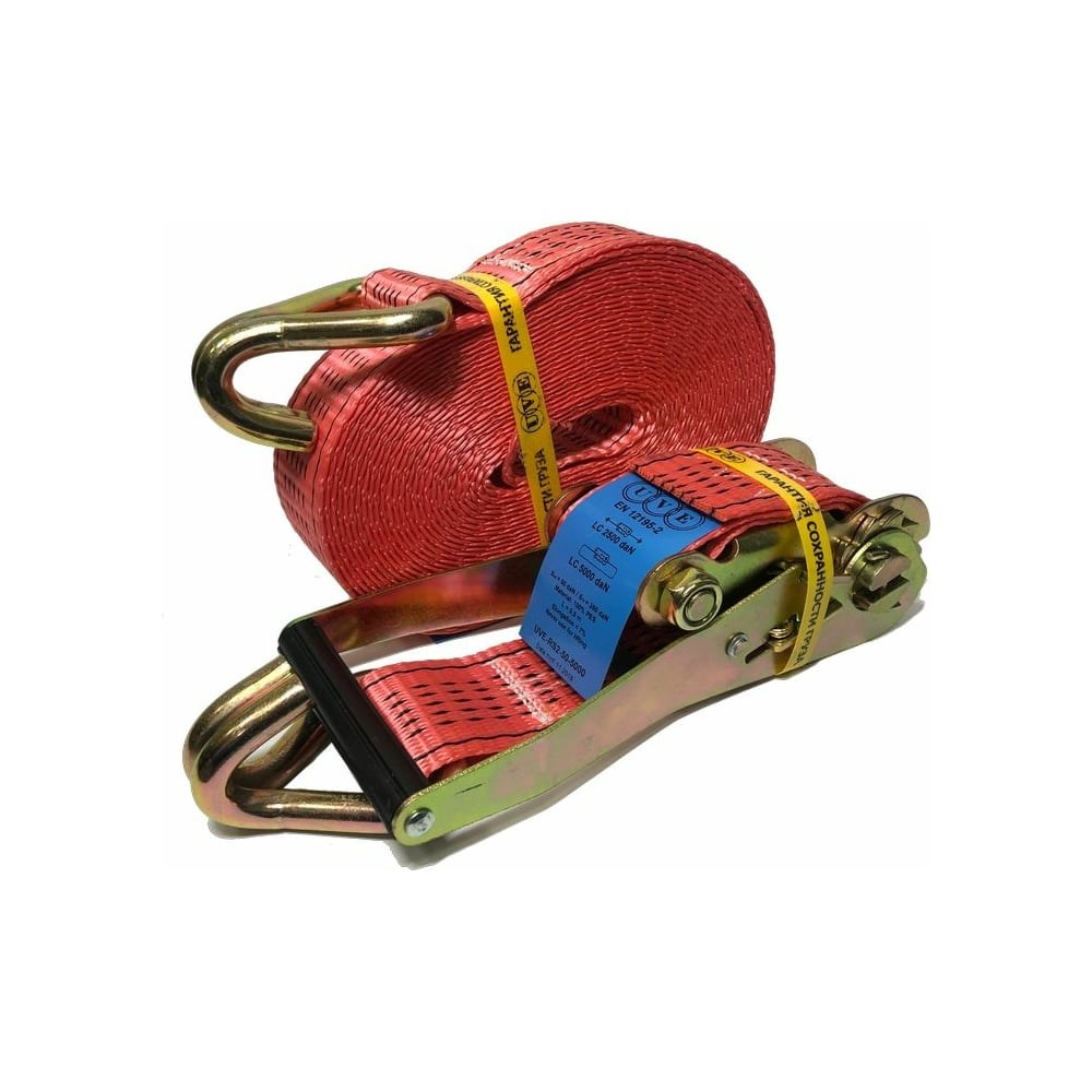 Стяжной ремень UVE 2,5/5,0 тн, 8 метров RS2-50-5000-8 используется для фиксации груза с целью его транспортировки. Выдерживает вес до 5 тонн. Ремень выполнен из прочного материала.