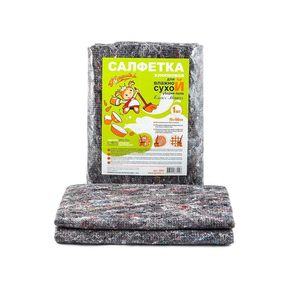 Сухая салфетка для пола из хлопка Золушка Класс Макси 70х100 см, серая, 1 шт. 3863 полностью состоит из 100% хлопка, она не только приятна на ощупь, при соприкосновении с кожей, но и очень легко стирается. Салфетки для уборки из хлопка отличаются повышенной плотностью, хорошо впитывают влагу, собирают пыль, быстро сохнут и отлично выжимаются. Одинаково практичны как при мокрой, так и при сухой уборке. Благодаря качественной обработке базового сырья салфетки из хлопка обладают повышенной износостойкостью и гарантируют длительный срок службы. Важным преимуществом является оптимальное сочетание цены и потребительских характеристик изделий.