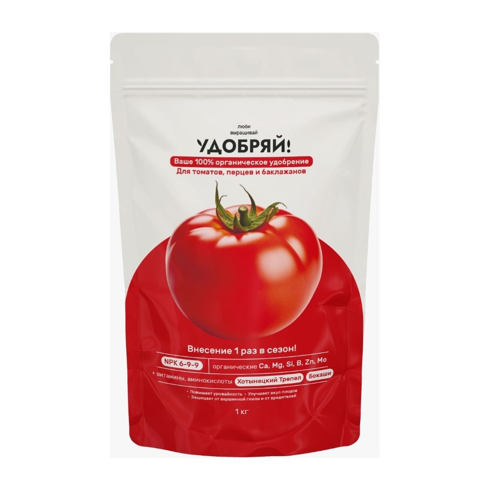 100% органическое удобрение для томатов, перцев и баклажанов. Сбалансированное сочетание высококачественного органического сырья, природных минералов и полезных микроорганизмов обеспечивают всеми необходимыми элементами питания на всех стадиях развития растения, благодаря быстрому усвоению основных компонентов и постепенному высвобождению дополнительных. Высокое содержание фосфора и присутствие бора способствует цветению и завязыванию плодов, органический кальций предотвращает появление вершинной гнили, а также способствует накоплению сахаров, улучшает вкус плодов, ускоряет созревание. Входящий в состав Хотынецкий трепел обеспечивает защиту от подгрызания высаженной рассады муравьями и слизнями, обеспечивает почву органическим кремнием. Состав: костная (фосфор, кальций) и кровяная (азот, железо) мука КРС, рыбная мука (азот, кальций, фосфор), органические калий, магний, кальций, микроэлементы, хотынецкий трепел (кремний), бокаши, комплекс аминокислот и витаминов. Нормы и способ внесения: 1ст л = 10г, 1 стакан = 200г При посадке: внести в лунку 200г удобрения, тщательно перемешать, полить. Для подкормки вегетирующих растений: 200г удобрения х 1 растение рассыпать по поверхности, аккуратно зарыхлить, полить. С середины июля для ускорения созревания рекомендуется внесение удобрения «Осеннее».