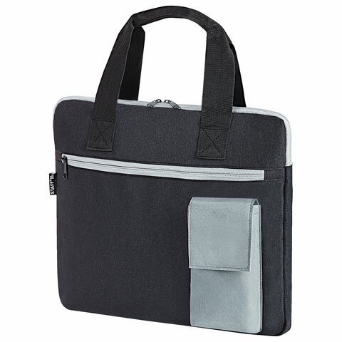 Сумка для документов STAFF DELEGATE на молнии, два кармана, полиэстер, черная/серая, 30х34х2 см, 272619