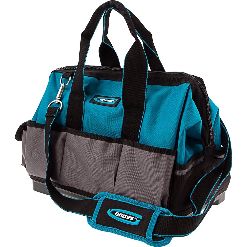 Сумка для инструмента Gross Handwerker 90272 габаритами 400 х 225 х 310 мм, с 26 карманами, пластиковым дном и наплечным ремнем, будет полезна слесарям, монтажникам, электрикам, а также автомобилистам. В основном отделении, внутренних и внешних карманах поместятся все необходимые инструменты.