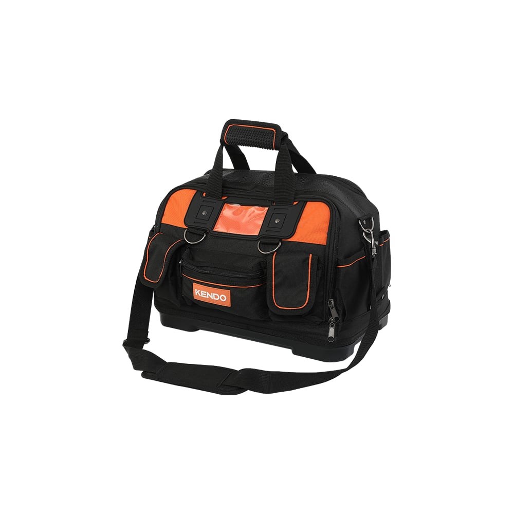 Сумка для инструмента KENDO на молнии, 42 см 90134 предназначена для хранения и транспортировки инструментов. Сумка выполнена из качественной водоотталкивающей ткани. Изделие оснащено множеством карманов для рационального распределения содержимого. Наплечный ремень позволяет удобно носить сумку. Прорезиненная ручка не натирает ладонь при длительной носке.
