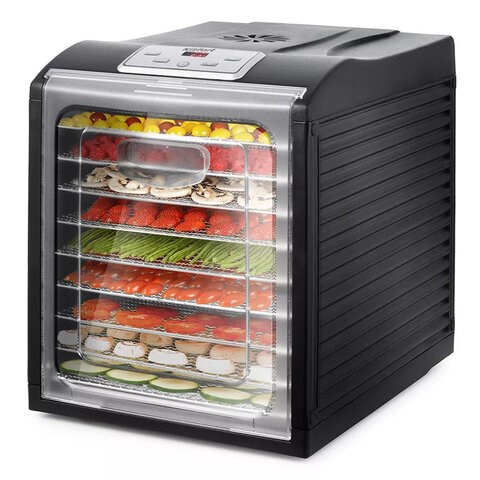 Стильный минималистичный дизайн с полностью съемной дверцей позволяет легко наблюдать за процессом сушки. Большие поддоны размером 300х320 мм вмещают значительное количество продуктов, а компактные габариты устройства (342х470х415 мм) делают его удобным для хранения.