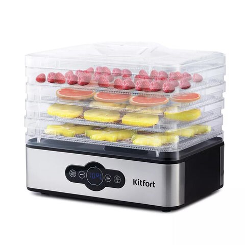 Сушилка для овощей KITFORT КТ-1914, 240 Вт, 5 поддонов, электронное управление, черная/серебристая