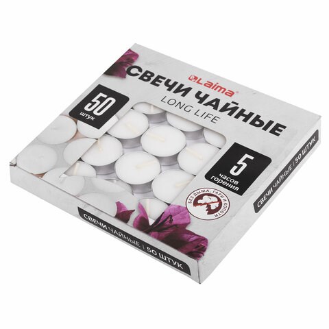 Свечи чайные Long Life, до 5 часов горения, вес 12 г, КОМПЛЕКТ 50 шт., в гильзе, LAIMA, 609200