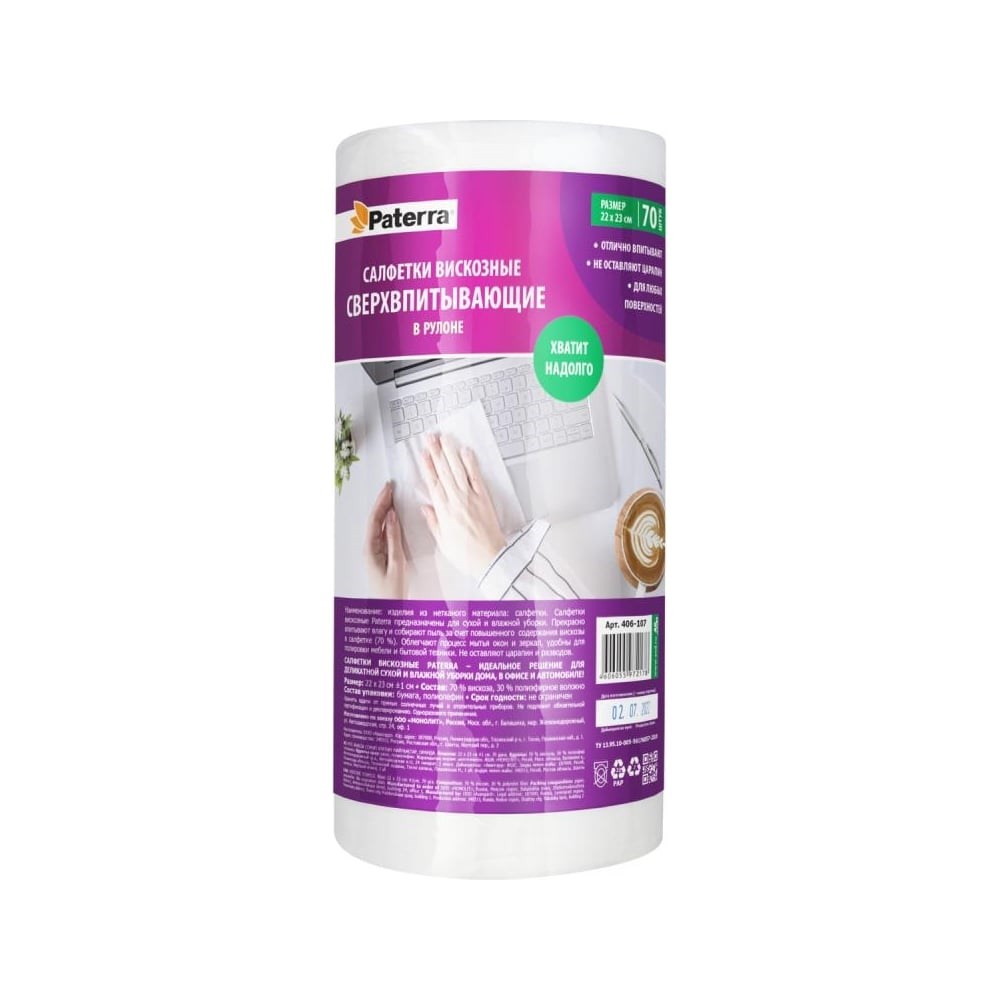 Обладают повышенной плотностью и прочностью, долговечны. Повышенное содержание вискозы в составе салфеток PATERRA обеспечивает идеальную впитываемость.