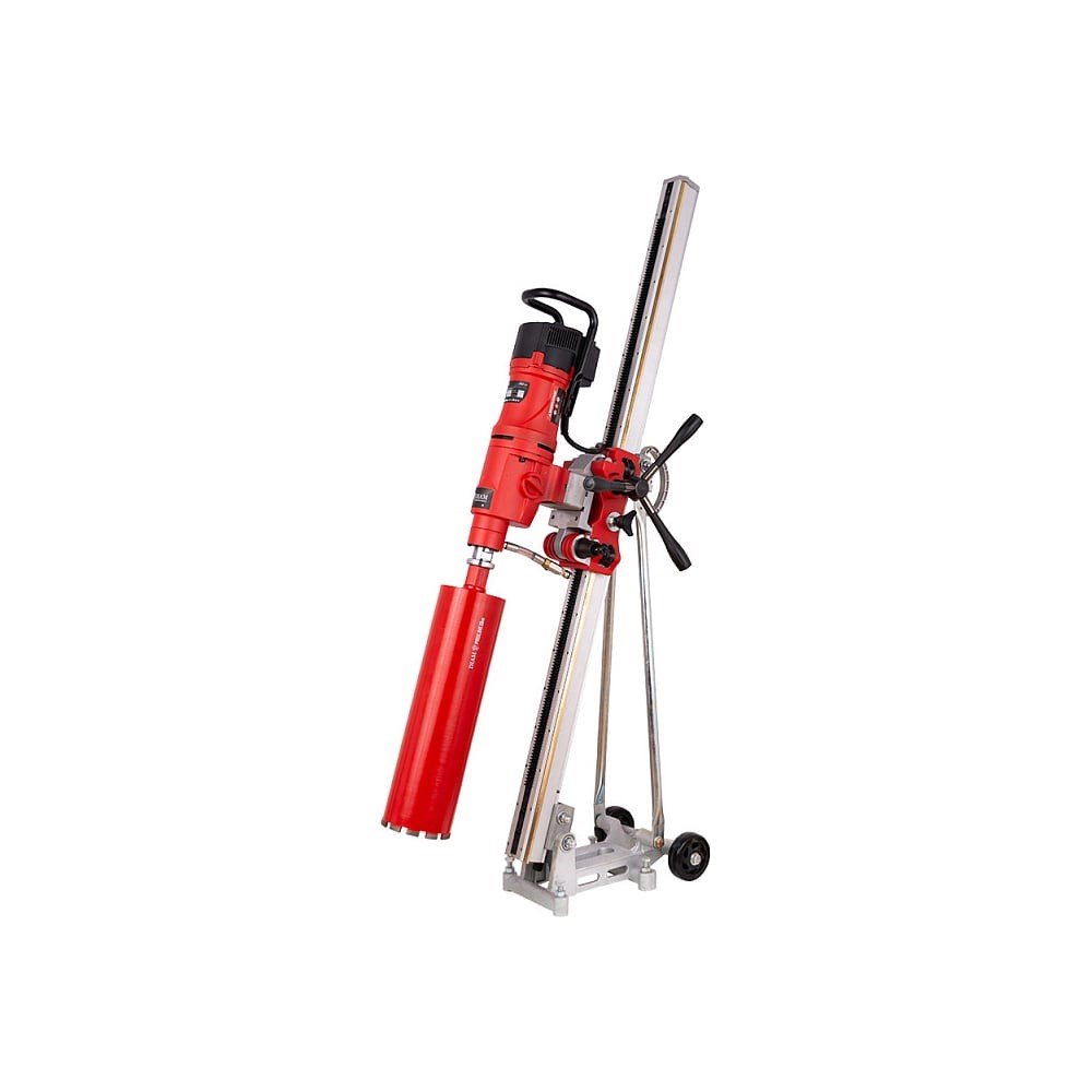 Установка алмазного бурения DIAM PL-500/3ADC-1500 - профессиональная бурильная установка со стойкой для сверления под углом в комплекте. Предназначена для сверления технологических отверстий в бетоне, железобетоне и кирпиче диаметром 180/350/500 мм. Рабочий ход каретки 1200 мм. Мощность электродвигателя 4,08 кВт оптимально подходит для выполнения среднего объема строительных работ, работ по прокладке электрических и телевизионных кабелей, сантехнических и вентиляционных труб. Сверлильная машина оснащена цифровым табло (функция DIGITAL CONTROL) отображающим данные работы двигателя: напряжение в сети, температура, сила тока, мощность в моменте, перегрузка, состояние угольных щеток, работа в нормальном режиме, время работы. Машина оснащена световыми индикаторами сообщающими о перегреве, нагрузке, перегрузке.