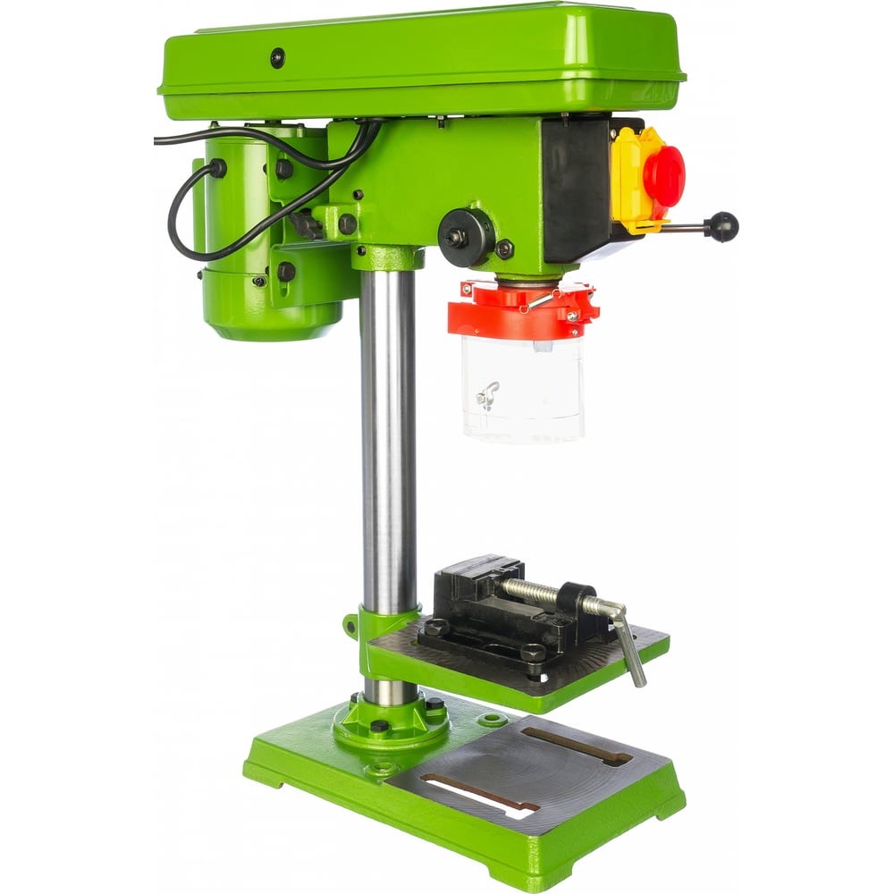 Сверлильный станок Калибр СС-16/550 00000045685 используется для получения отверстий в деревянных, пластиковых, металлических деталях и деталях их различных сплавов. Для безопасности модель оснащается защитным экраном из прозрачного пластика, который не закрывает обзор области сверления. Экономичный электродвигатель потребляет всего 550 Вт. Рабочий стол поворачивается и перемещается вертикально, что дает возможность обрабатывать заготовки разных габаритов и сложности.