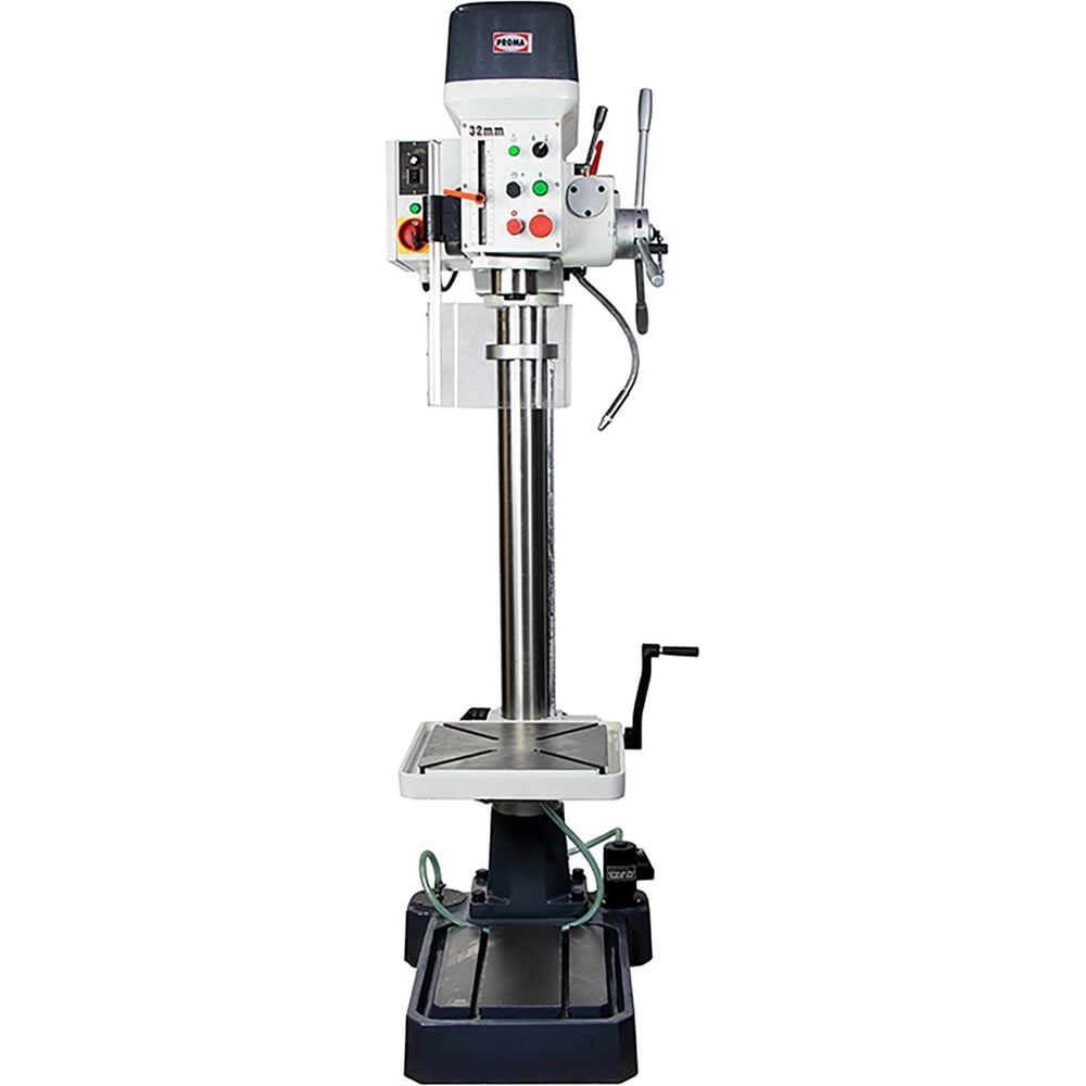 Сверлильный станок PROMA BY-3220PC/400 25003220 используется для обработки металлических деталей большого размера. Наличие прочного и широкого основания обеспечивает устойчивость при работе. При сверлении заготовок малого размера используется стол. Автоматическая подача значительно упрощает серийное производство. Ограничение по диаметру резьбы: М24 для чугуна и М20 для стали. Прочная стальная колонна диаметром 100 мм обеспечивает жесткость конструкции и способствует передаче усилия от рукоятки к сверлу. Общая высота станка: 1855 мм.