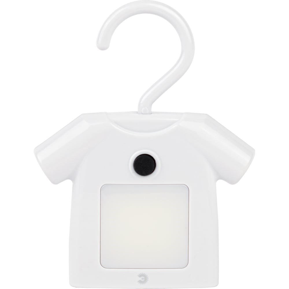 Светильник-ночник ЭРА NLED-485-1W-S-WW белый 48/1344 Б0049343 напоминает рубашку на вешалке. Светильник автономный, работает от элементов питания 3хААА (не входят в комплект поставки), у него есть крючок для подвеса с поворотом в любом направлении. Есть магнитное крепление - на металлических поверхностях держится без крюка. Также светильник-ночник можно просто поставить - будет устойчиво стоять. Используйте его где удобно - можно повесить в шкаф для подсветки, в любое другое подходящее место, просто поставить и даже прикрепить на холодильник. Поменять батарейки очень легко. Поставляется в блистерной упаковке с евроотверстием.