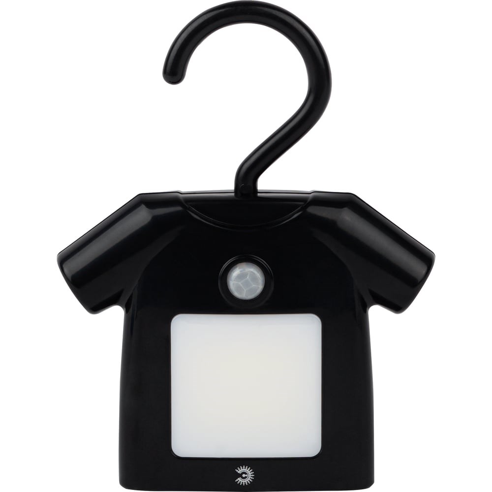 Светильник-ночник ЭРА NLED-486-1W-MS-BK черный 48/1344 Б0049346 с датчиком движения - включается при движении в зоне 2,5 м, выключается автоматически через 30 секунд после окончания движения. Дизайн корпуса ночника напоминает рубашку на вешалке. Светильник автономный, работает от элементов питания 3 х ААА (не входят в комплект поставки), есть крючок для подвеса с поворотом в любом направлении. Есть магнитное крепление - на металлических поверхностях держится без крюка. Также светильник-ночник можно просто поставить, он будет устойчиво стоять. Используйте где Вам удобно - можно повесить в шкаф для подсветки, в любое другое подходящее место, просто поставить, даже прикрепить на холодильник. Поменять батарейки очень легко. Поставляется в блистерной упаковке с евроотверстием.