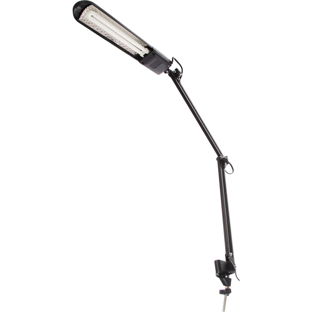 Светильник Дельта (с ЭПРА), на пластиковой струбцине, с люминесцентной лампой с цоколем 2G7 мощностью 11Вт (в комплекте), цвет - черный. Выключатель кнопочный на плафоне. Подходит для использования в жилых помещениях и учебных заведениях, в офисах, а также в медицинских учреждениях и пр.