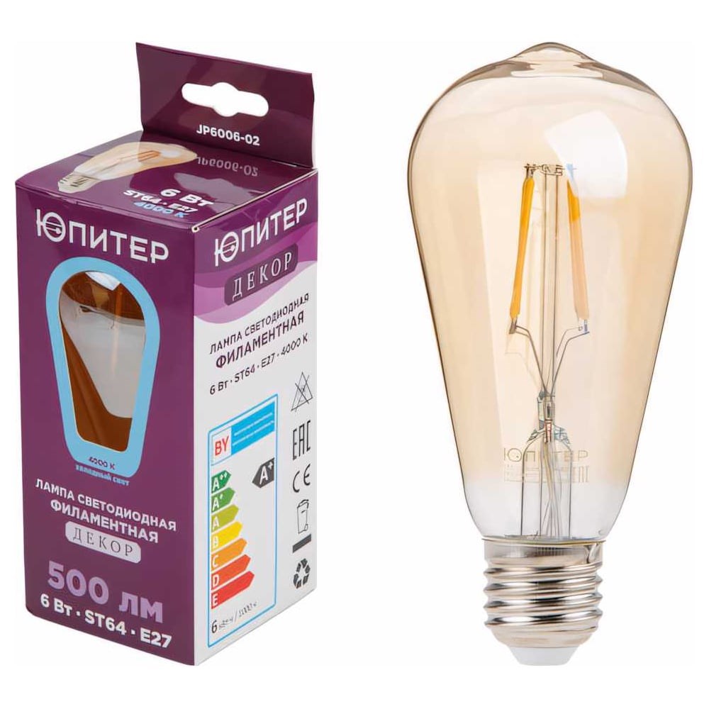 Светодиодная филаментная лампа ЮПИТЕР E27 ST64 6 Вт 4000К JP6006-02