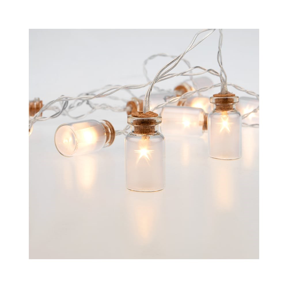 Светодиодная гирлянда «Баночки» — необычный, эффектный интерьерный декор, который украсит обстановку, подчеркнет особенности дизайна и уникальный стиль помещения. 10 насадок в виде баночек, расположенных на шнуре-основе, подсвечиваются яркими диодами, излучающими теплый белый свет. Гирлянда имеет батарейный блок и питается от двух элементов типа АА, что говорит об абсолютной безопасности изделия. Яркое оригинальное исполнение позволяет создать неповторимые акценты, которые неизменно привлекут внимание. Степень защиты IP20 предполагает домашнее использование.
