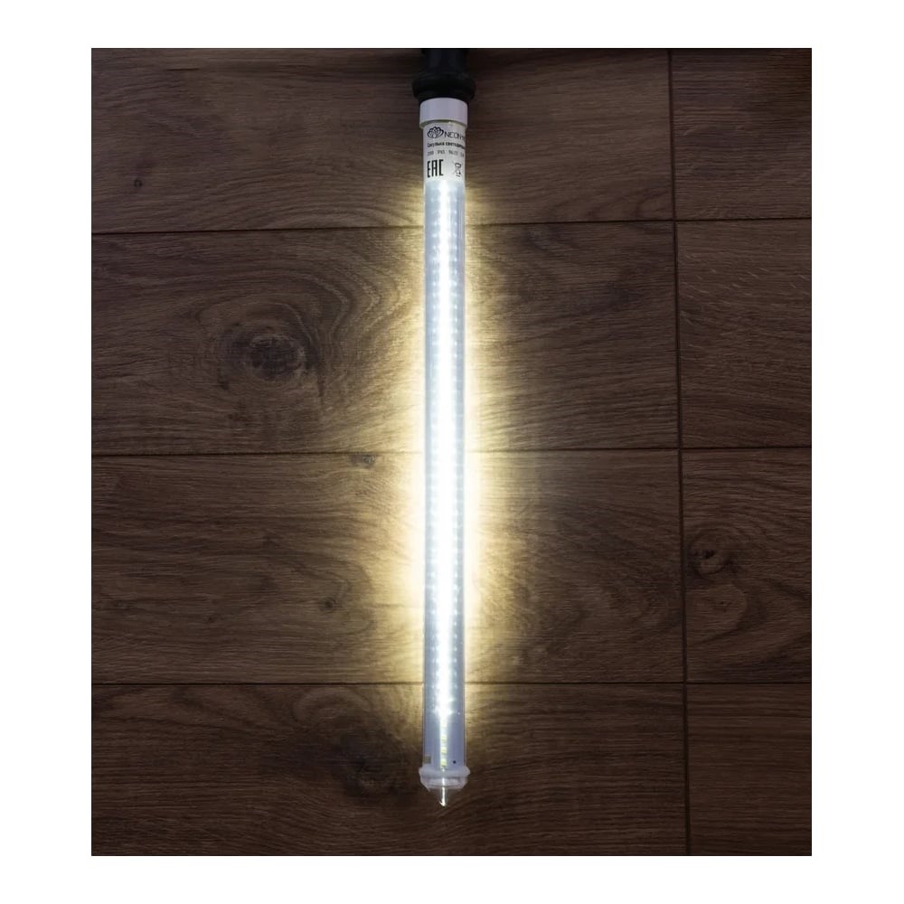 Дополнительные технические характеристики: Внутри "сосульки" закреплена двусторонняя тонкая плата со светодиодами белого цвета свечения и микрочипом. Тип цоколя - Е27. Тип и кол-во источников света - 96 LED. Вспомогательное оборудование: белт-лайт двухжильный. Температурный режим - от -40 до +50ºС.