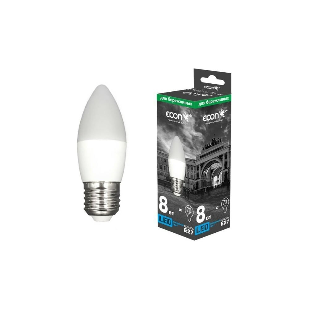 Светодиодная лампа ECON LED CN 8Вт E27 6500K B35 ES 728022