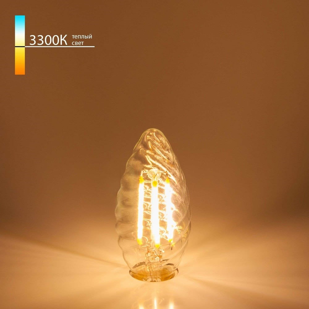 Светодиодная лампа Elektrostandard BLE1413 Свеча витая F 7W 3300K E14 прозрачный a049117 внешне максимально приближена к лампам накаливания. Она имеет полностью прозрачную стеклянную колбу и цоколь, а внутри расположены светодиоды вместо нити накала.Цветовая температура - 3300 К, т.е. теплый свет близкий к цвету Солнца. Изделие рассчитано на использование в сети с переменным напряжением в 220-240В.