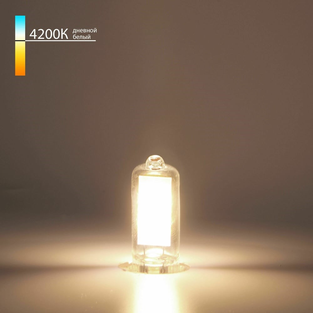 Светодиодная лампа G9 LED 3W 220V 4200K стекло. Светодиодная лампочка с цоколем G4 и размерами 51 мм по высоте и диаметром в 13 мм обладает мощностью в 3 W. Цветовая температура – 4200 К, т.е. теплый свет близкий к цвету Солнца.Ориентировочный срок службы составляет 50000 ч.