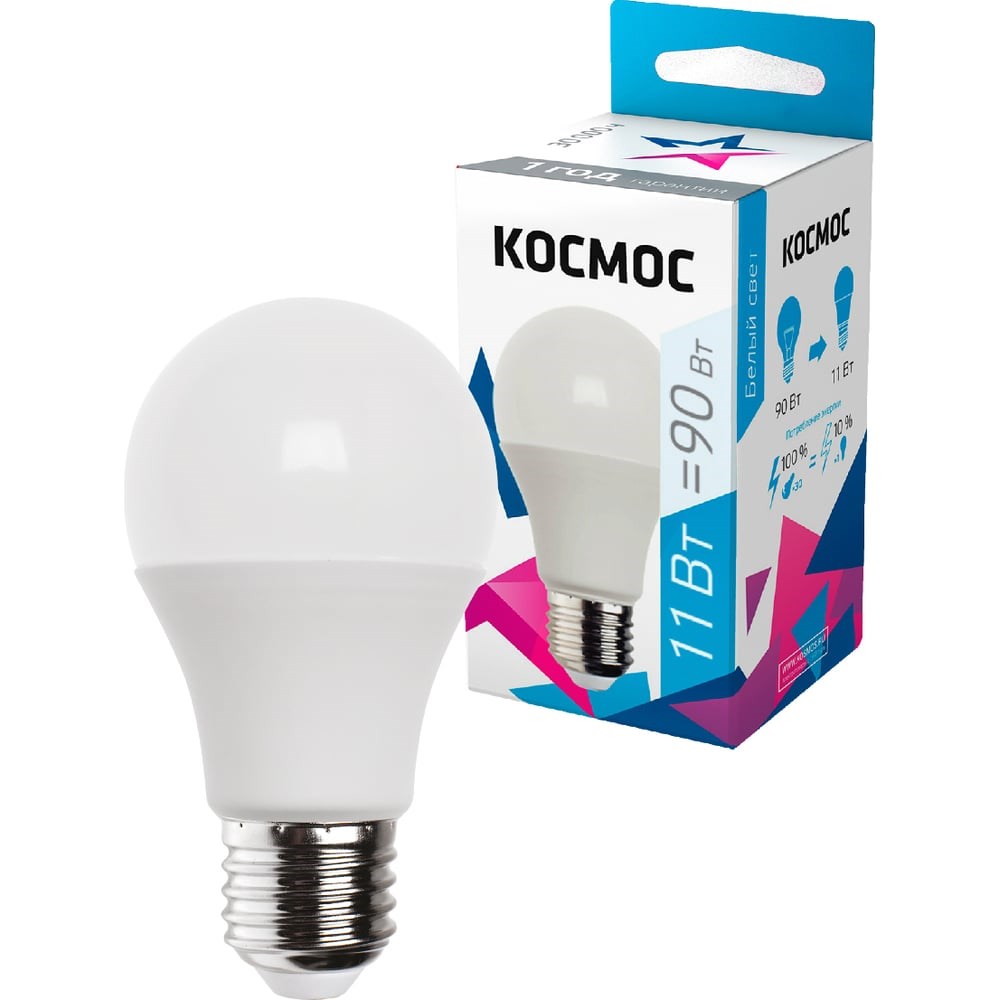 Светодиодная лампа КОСМОС LED A60 11Вт 220В E27 4500К 441266 LkecLED11wA60E2745 применяется для общего освещения. Имеет длительный срок службы 30000 ч.