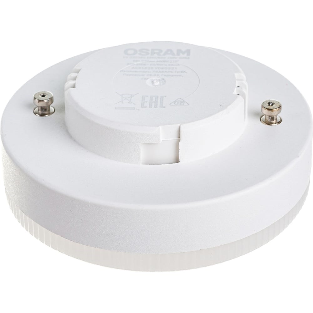 Лампа спот OSRAM серии LED Value с цоколем GX53. Материал колбы - пластик, исполнение - матовое. Световой поток 640 люмен, что соответствует лампе накаливания на 60 Вт. Подобные лампы используются для внутреннего освещения. Напряжение питания 220-240В. Лампа излучает теплый белый свет, угол пучка - 110° Срок службы - 25000 часов. Товар сертифицирован.