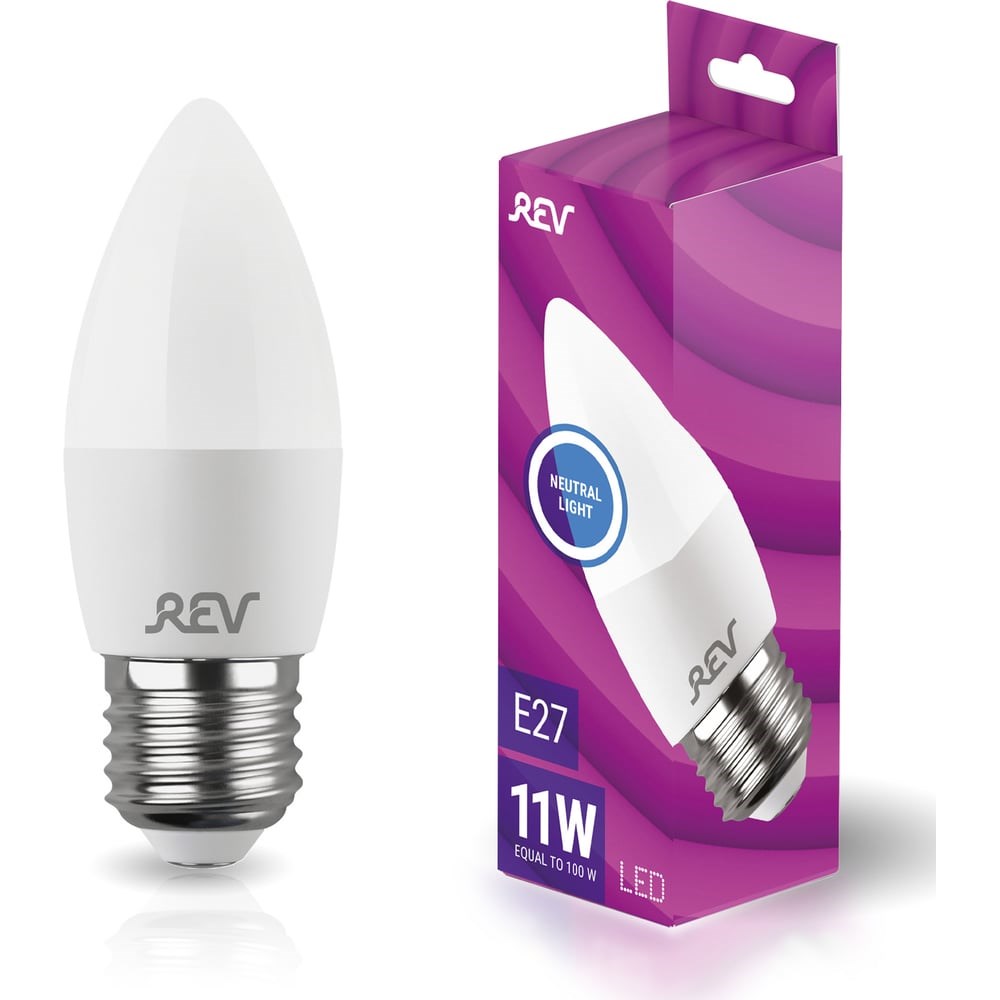 Светодиодная лампа LED C37 Е27 11W, 4000K, нейтральный свет 32525 3 является надежным, долговечным и экономичным осветительным элементом, который имеет стандартный цоколь и матовую поверхность колбы. Станет идеальным вариантом для эксплуатации совместно с настольными или настенными светильниками.Светодиодные лампочки — современный источник света, идеально подходящий для освещения витрин, интерьеров, декоративной подсветки. Они характеризуются низкой температурой нагрева, что позволяет использовать их в декоративных светильниках. Срок службы светодиодной лампочки до 30 раз дольше срока службы лампы накаливания. Уровень энергопотребления в 10 раз ниже по сравнению с аналогичными по световой отдаче лампами накаливания. В набор входит 1 светодиодная лампочка REV.
