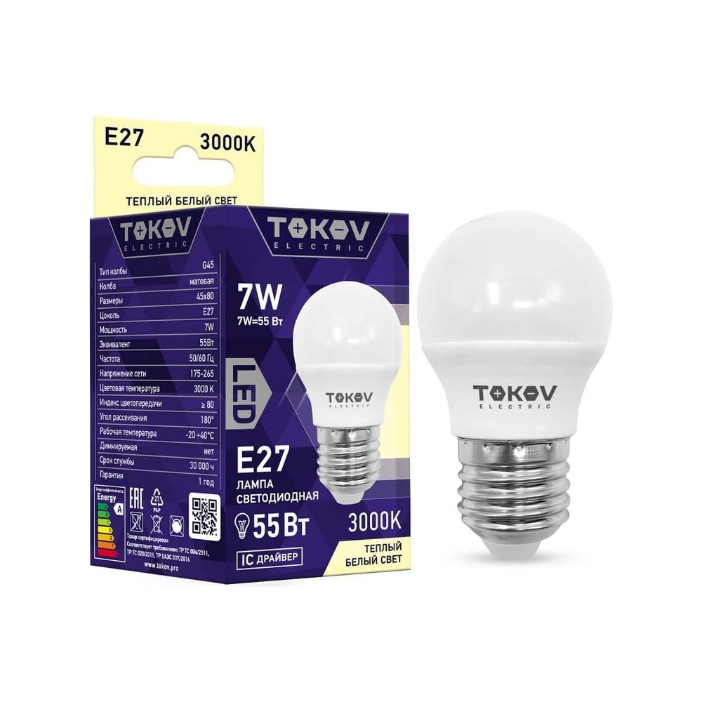 Светодиодная лампа TOKOV ELECTRIC 7Вт G45 3000К Е27 176-264В TKE-G45-E27-7-3K