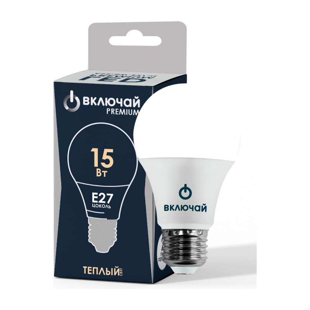 Светодиодная лампа Включай 15W E27 A60 3000K 220V LED PREMIUM А60-15W-E27-N ЛОН 1007797