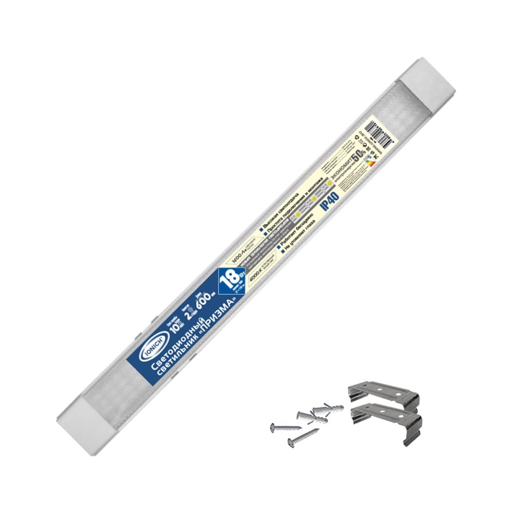 Светодиодный линейный светильник IONICH Призма ILED-ДПО600 18Вт-1600Лм-220В-4000К-IP40 1599 подходит для установки в сухих помещениях закрытого типа или под навесом, где нет прямого попадания осадков, например, медицинских и образовательных учреждениях, в офисных и административных зданиях и пр. Имеет простую конструкцию и легко поддается монтажу на любую необходимую поверхность. Оснащен встроенными светодиодами, которые отличаются повышенным рабочим ресурсом, эффективным освещением и низким уровнем потребления электроэнергии. Изделие станет надежным помощником при подсветке рабочей зоны на кухне, в гараже, мастерской, а также освещении коридоров, лестниц, лифтовых холлов, балконов, гардеробных, подвалов и кладовых комнат и т. д.