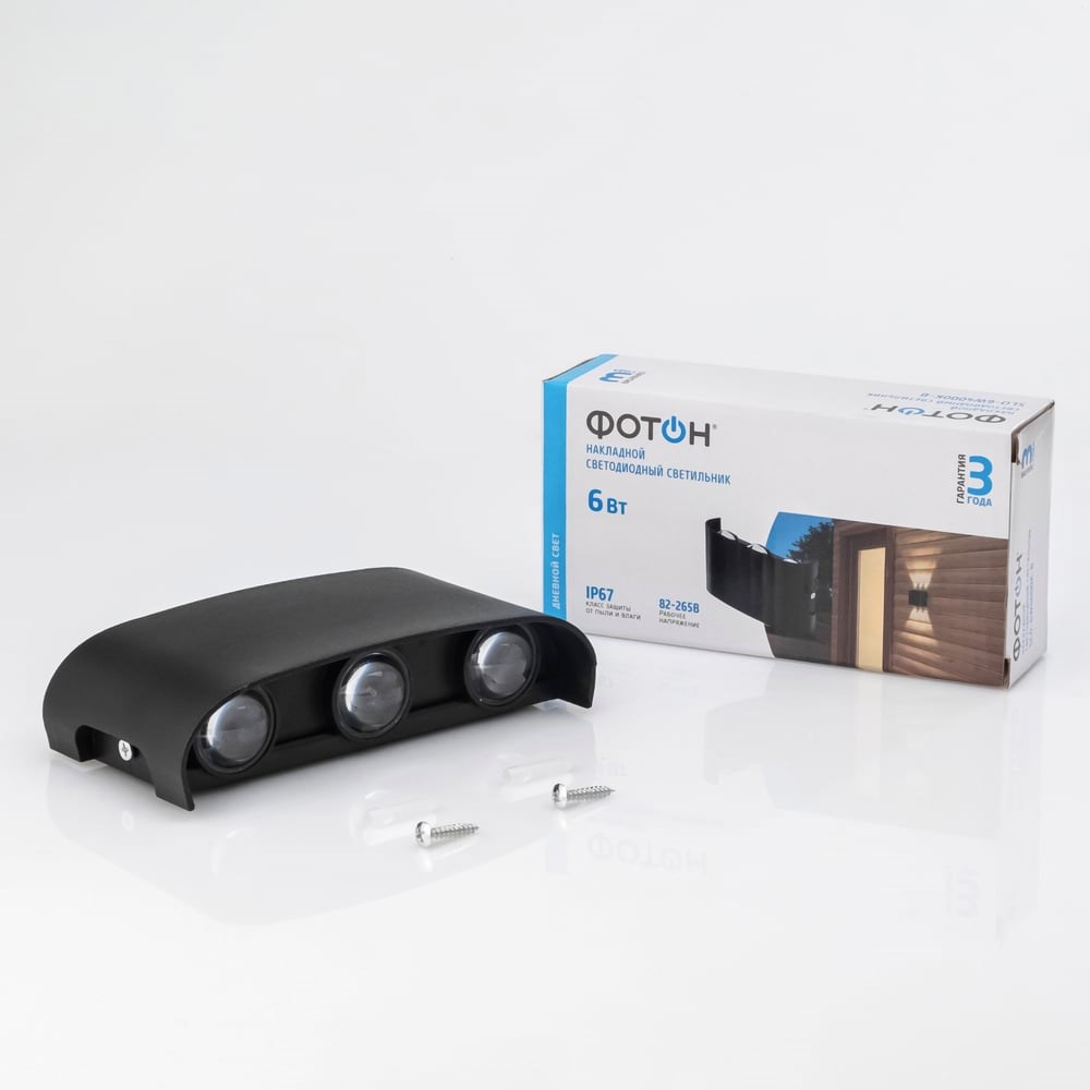 Светодиодный накладной светильник ФОТОН SLO- 6W4000K-B, черный 24739 относится к продуктовой категории "архитектурная подсветка" и предназначен для декоративного освещения домов, дач и других строений, в том числе в условиях нестабильного напряжения электросети. Обеспечивает стабильно ровный световой поток в диапазоне напряжений от 82 В до 265 В. Может использоваться в самых неблагоприятных погодных условиях, в том числе при снеге и дожде любой интенсивности. Технология термореактивной порошковой покраски обеспечивает устойчивость к истиранию, механическому и электрическому воздействию, УФ-излучению и перепадам температуры.