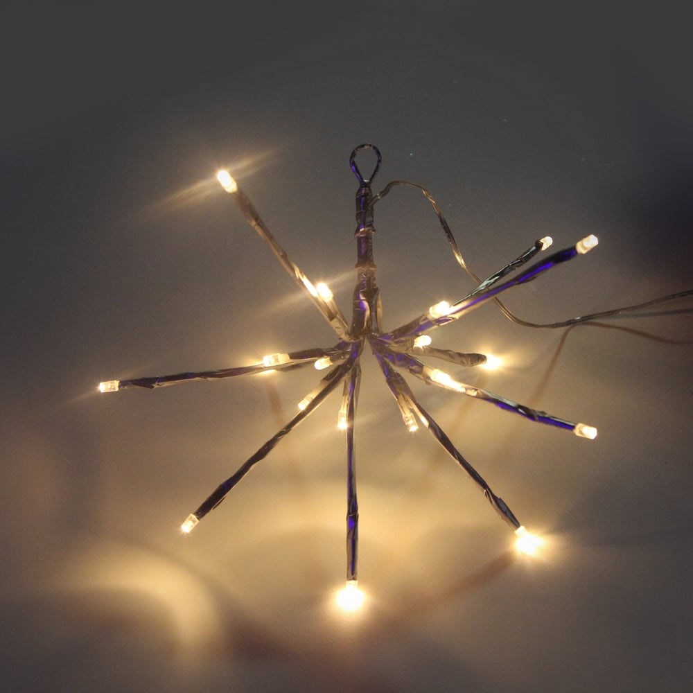 Световая декорация арт. TB20-WW-BO "Еж" - оригинальный и необычный светильник. Изделие состоит из 10 лучей, лучи скреплены между собой в одной точке. Благодаря такой конструкции, светильнику можно придать различные формы от сферы до полусферы и прочие. На каждом луче "ежа" расположено по 2 светодиода тепло-белого цвета. "Еж" работает от трех батареек АА. Светильник предназначен для использования внутри помещений.