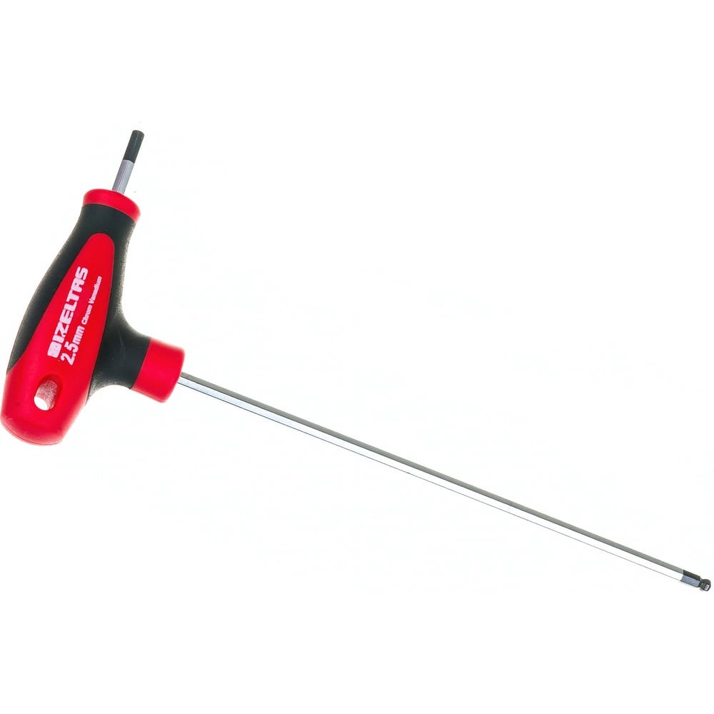 Шестигранник с шаром Т-образный с рукояткой IZELTAS 2.5 мм. Длинная часть 102 мм, короткая часть 17.5 мм. Габариты упаковки 65x140x14 мм. Изготовлен из высококачественной стали 61CrSiV5. Однокомпонентная рукоятка, наконечник покрыт чёрной оксидной плёнкой. Вес 10 грамм. Код производителя 4921220025