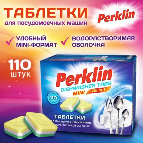 Таблетки для посудомоечных машин MINI TABS 110 шт. PERKLIN (ПЕРКЛИН) "ALL in 1", растворимая оболочка, 609647