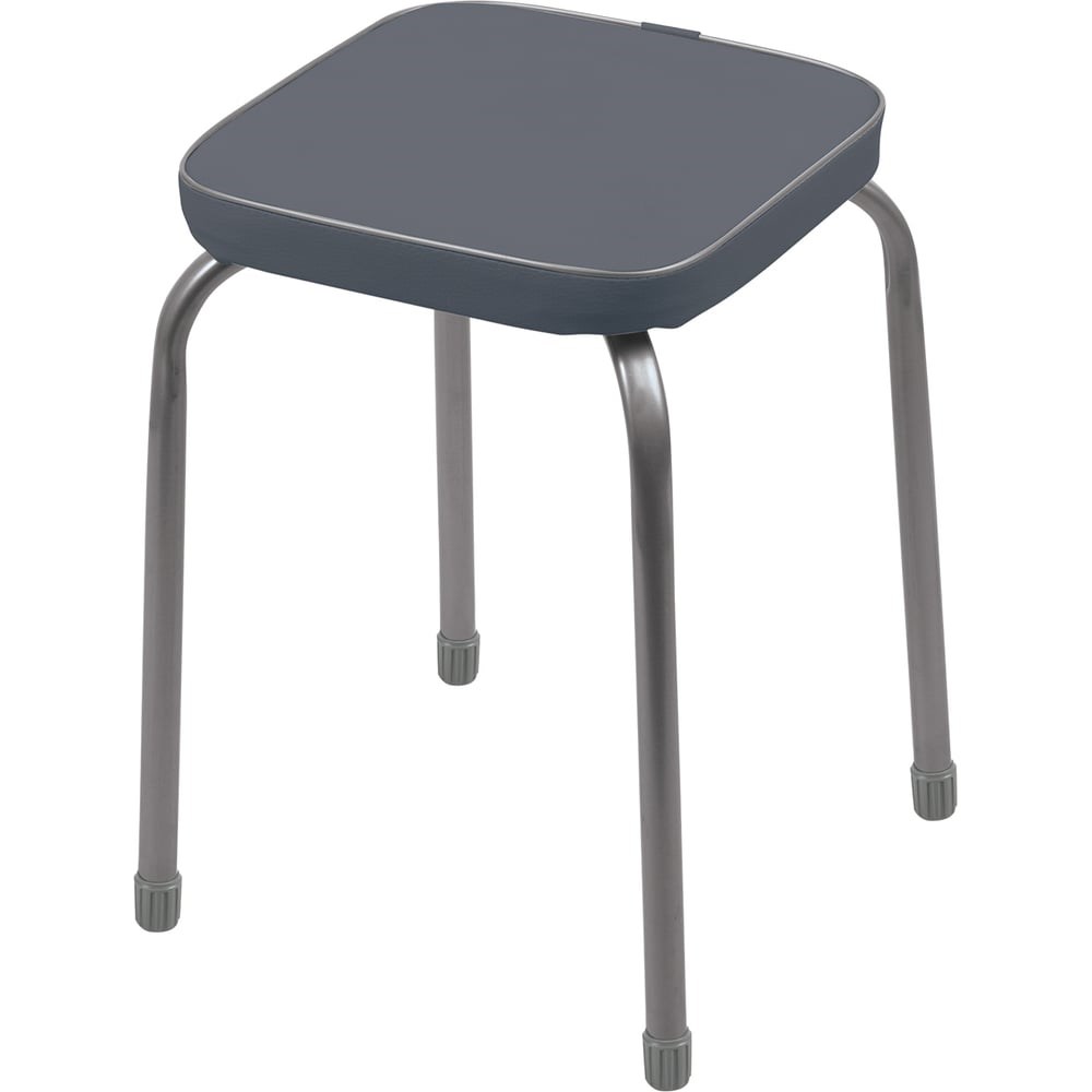 Табурет на четырех опорах с мягким сиденьем из винилискожи. Материал сиденья устойчивый к истиранию и лёгкий в чистке. Пластиковые колпачки на ножках защищают поверхность пола от царапин. Конструкция стула позволяет легко штабелировать несколько изделий.