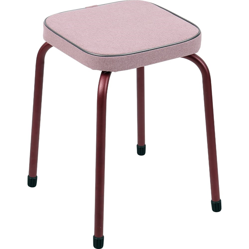 Табурет на четырех опорах с мягким тканевым сиденьем, декорированным стильной вышивкой. Пластиковые колпачки на ножках защищают поверхность пола от царапин. Конструкция стула позволяет легко штабелировать несколько изделий.