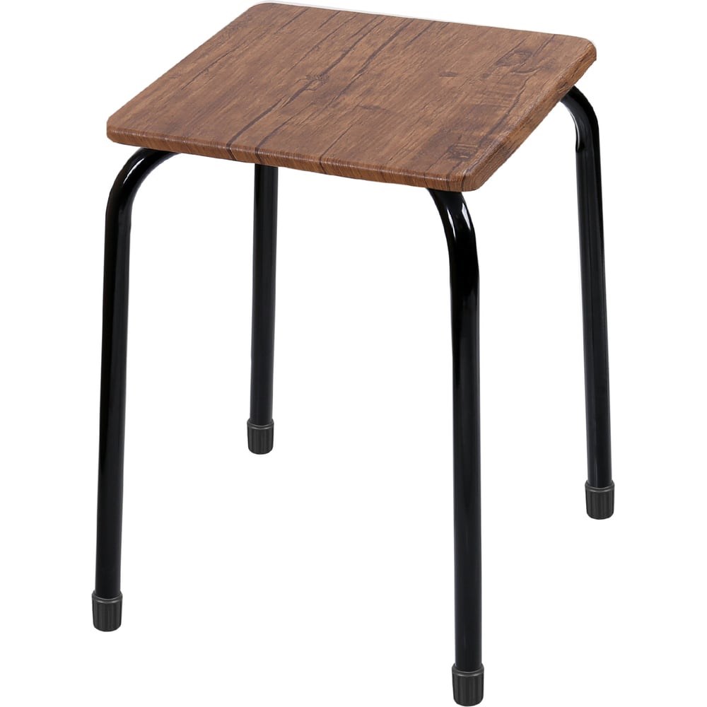 Табурет на четырех опорах с сиденьем из МДФ с древесным декором. Пластиковые колпачки на ножках защищают поверхность пола от царапин. Конструкция стула позволяет легко штабелировать несколько изделий.