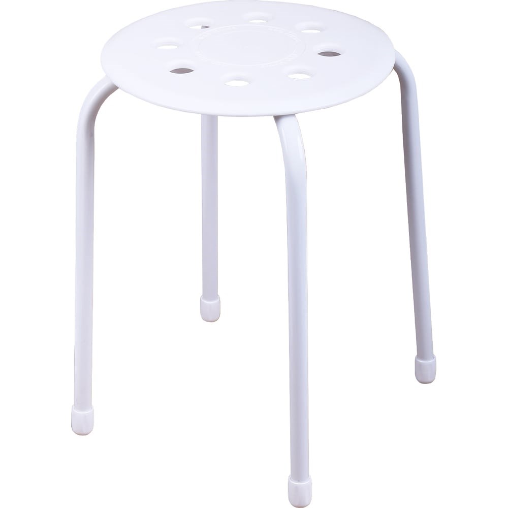 Табурет на четырёх опорах с пластиковым сиденьем. Материал сиденья не боится влагт и лёгкий в чистке. Пластиковые колпачки на ножках защищают поверхность пола от царапин. Конструкция стула позволяет легко штабелировать несколько изделий.
