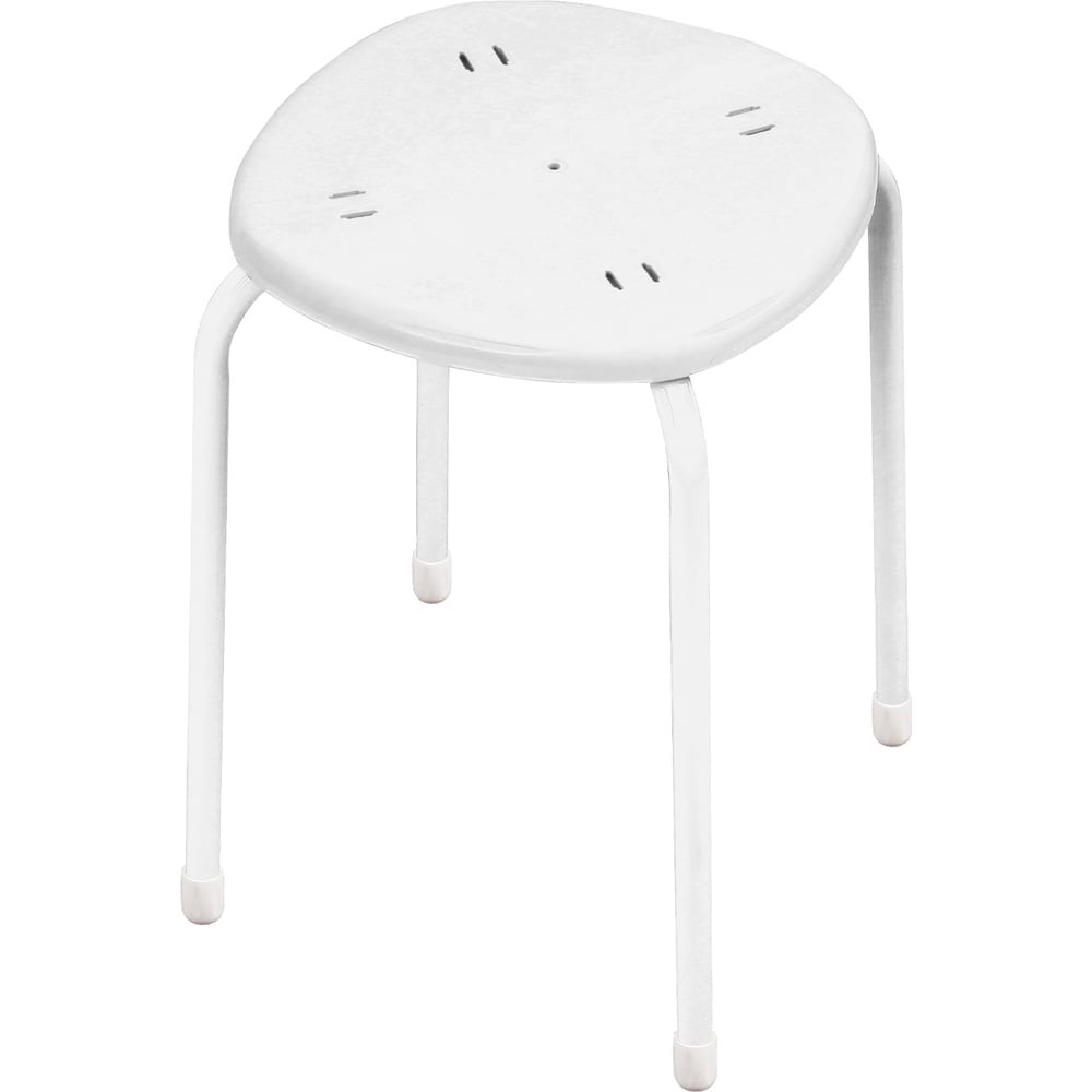 Табурет на четырёх опорах с пластиковым сиденьем. Материал сиденья не боится влагт и лёгкий в чистке. Пластиковые колпачки на ножках защищают поверхность пола от царапин. Конструкция стула позволяет легко штабелировать несколько изделий.