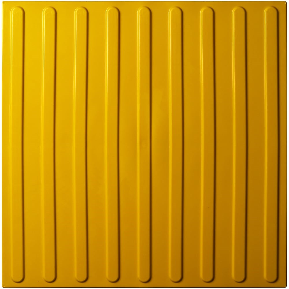 Тактильная плитка PALITRA TECHNOLOGY направление движения, полоса 10шт 50245-1-PVC-500x500x4-Y-10 изготовлена из высококачественного литого ПВХ пластика. Твёрдость плитки не превышает 98 ед по Шору по таблице А, что обеспечивает достаточно высокие эксплуатационные характеристики и предотвращает образование заломов на плитки в процессе укладки. Внутренняя поверхность конусов усилена цельнолитыми рёбрами жёсткости, которые имеют цельнолитую структуру и не имеют видимых швов и соединений с поверхностью плитки, что значительно увеличивает прочностные свойства изделия. Продольное расположением девяти тактильных рифов информирует людей с нарушением зрения о " Поле получения услуги" Предназначена для использования внутри помещений.
