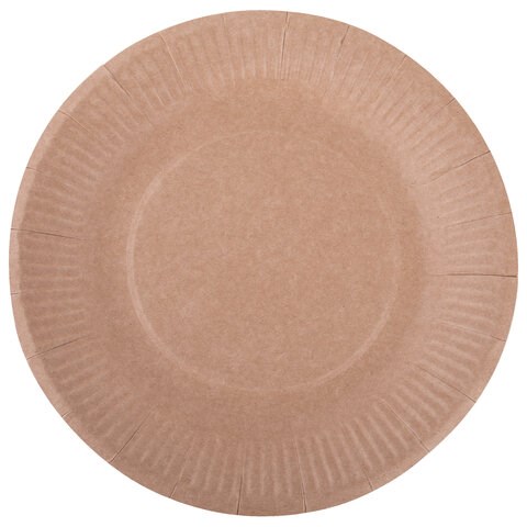 Тарелка одноразовая крафт бумажная 180 мм, КОМПЛЕКТ 100 штук, LAIMA ECO CRAFT, 608087