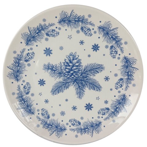 Тарелка сервировочная новогодняя 23 см, "Еловые ветки", каменная керамика, ЗОЛОТАЯ СКАЗКА, 592548