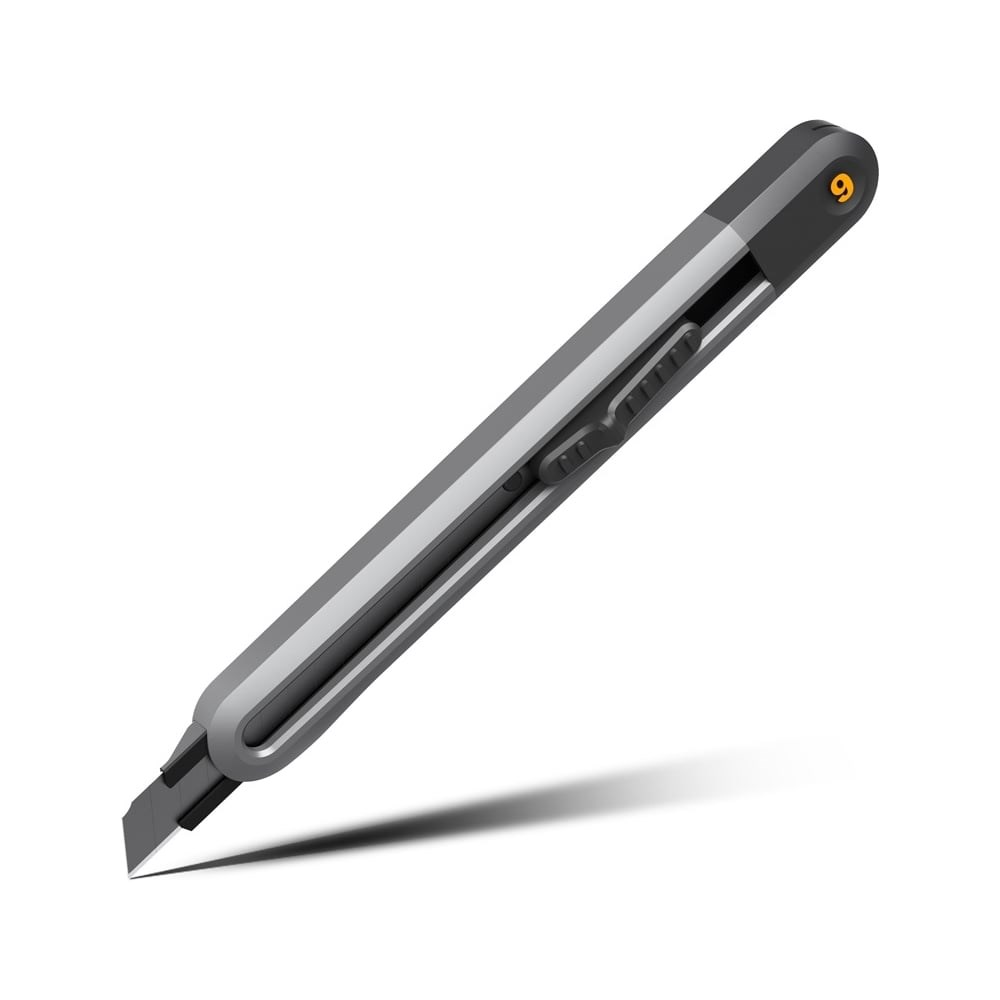 Технический нож "Home Series Black" Deli HT4009 (сегментированное черное лезвие 9мм, эксклюзивный дизайн, корпус из высококачественного софттач пластика) применяется для реза бумаги, картона, линолеума и других материалов. Лезвие выполнено из качественной стали SK2, благодаря чему отличается исключительной надежностью и остротой и легко меняется при необходимости. Корпус со специальным покрытием Soft Touch обеспечивает комфортную эксплуатацию, стойкость к атмосферным явлениям и образованию сколов и трещин. Эксклюзивный дизайн - изящный, но одновременно строгий и современный - уделяет внимание каждой детали. Нож упакован в стильную картонную коробку и будет отличным подарком для любителей качественного, современного инструмента.