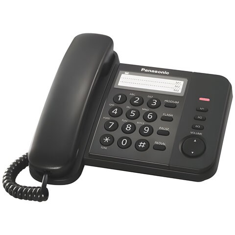Телефон PANASONIC KX-TS2352RUB, черный, память 3 номера, повторный набор, тональный/импульсный режим, индикатор вызова