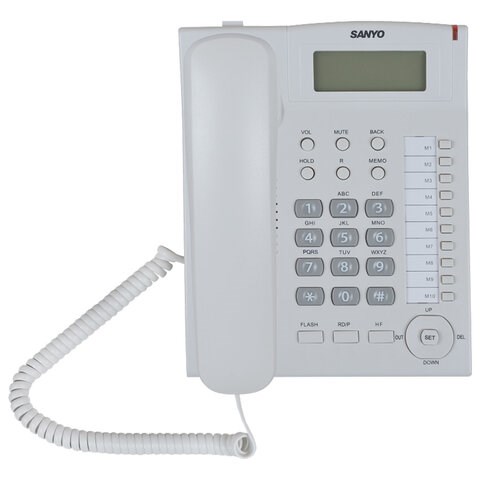 Телефон SANYO RA-S517W, спикерфон, память 30 номеров, тональный/импульсный режим, белый