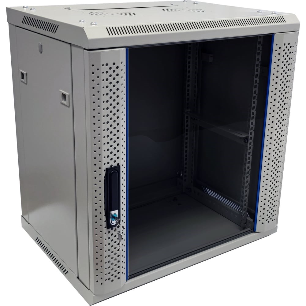 Телекоммуникационный шкаф 5Bites 12U 600x450 WALL GREY TC6403-12G для настенного монтажа. Современный дизайн, быстрая и простая сборка шкафа, прочная сварная рама из 1.5 мм стального профиля. Удобно расположенные кабельные вводы сверху и снизу конструкции. Съемные боковые панели позволяют легко выполнять монтаж оборудования. Две пары монтажных направляющих с юнитовой разметкой. Продуманная естественная (пассивная) вентиляция, за счет перфорации в корпусе шкафа и на передней дверце. Съемная передняя дверь с ригельным замком может монтироваться как на левую, так и на правую стороны. Дополнительные характеристики: Максимальная нагрузка: до 60 кг Заземление: на корпусе Боковые панели: на защелках Кабельный ввод: в верхней и нижней крышках Передняя дверь: из тонированного ударопрочного стекла 5 мм в металлической раме с перфорацией Замок дверцы: ригельный с поворотной ручкой Вертикальные направляющие: две пары с маркировкой в юнитах и регулировкой по глубине Вентиляция: естественная с возможностью установки вентиляторного модуля на верхней крышке Материал корпуса: холоднокатаная сталь с порошковым покрытием