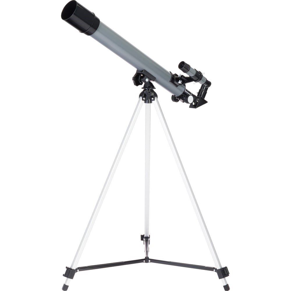 Телескоп Levenhuk Blitz 50 BASE 77098 позволит изучать лунную поверхность и наземные объекты. Это и телескоп, и зрительная труба в одном приборе, причем с расширенной и сбалансированной комплектацией. Прилагаемые аксессуары полностью раскрывают возможности оптики, поэтому телескоп не требует дополнительных вложений, что делает его отличным выбором для начинающего астронома. Телескоп собран по схеме ахроматического рефрактора из стеклянных линз с антибликовым покрытием. Световой диаметр составляет 50 мм, поэтому для астрономических наблюдений желательно выбирать яркие объекты ночного неба, например Луну. По наземным объектам прибор передает достойную по качеству картинку даже при слабой освещенности. Азимутальная монтировка позволяет свободно наводить оптическую трубу на объекты путем простого поворота в нужную сторону. Тренога сделана из алюминия, она устойчивая и надежная. Лотка для аксессуаров нет, зато присутствует возможность регулировки по высоте.