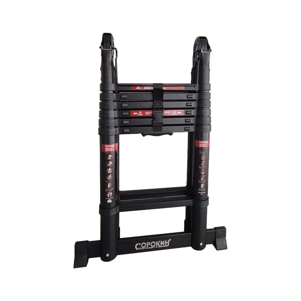 Телескопическая алюминиевая шарнирная лестница – легкая, компактная, надежная.Ее основное преимущество– выдвижная конструкция, которая в сложенном состоянии компактна и не требует много места при хранении и при перевозке.При небольшом весе, из-за облегченного алюминиевого каркаса, лестница способна выдерживать нагрузку до 150 кг.Соединительные механизмы обеспечивают простоту обращения, а надежные материалы – длительную эксплуатацию.Чтобы ее разложить, достаточно потянуть за верхнюю ступень вверх. Характерный щелчок означает, что уровень зафиксирован, можно вытягивать следующий.Благодаря телескопическому выдвижению секций от перекладины к перекладине возможно применение на лестницах, уступах, неровных поверхностях без дополнительных принадлежностей. Противоскользящие двухкомпонентные опорные заглушки препятствуют скольжению по гладкому полу.Секции телескопической лестницы состоят из опорных труб и перекладин – в зависимости от необходимости, высота лестницы может быть изменена.ВАЖНО!Перед использованием обязательно проверьте правильность установкилестницы! ВНИМАНИЕ!На каждой ступени имеются пластиковые фиксаторы. Лестница пригодна для использования только тогда, когда все фиксаторы встанут на свои места и защелкнутся. Шарниры должны быть заблокированы перед использованием лестницы!Фиксированное положение шарнира - 30, 105 и 180 градусов! Механизмы блокировки издают характерный щелчок при использовании, но, несмотря на это, визуально проверяйте, что рычаги заблокированы.