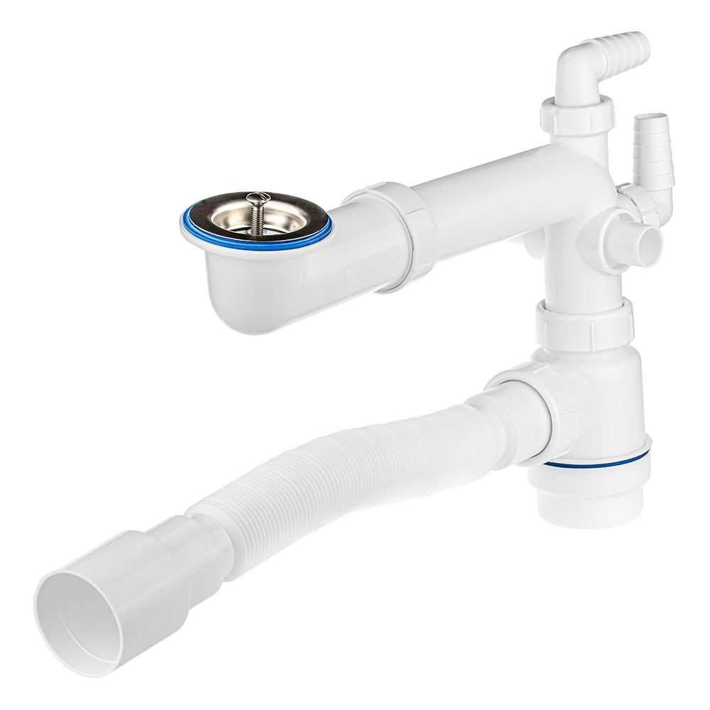 Сифон телескопический со смещением для выпуска 40-52 мм, 1.1/2"х40 с нерж.решеткой, гофротрубой 40x40/50, с четырьмя отводами MasterProf ИС.110632 устанавливается в раковины умывальников с диаметром выпускного отверстия 40-52 мм. Выполнен сифон из первичного полипропилена, что гарантирует высокую прочность, надежность и долговечность изделия.Телескопическая конструкция сифона позволяет увести колбу к стене, что кратно увеличит свободное пространство под умывальником.Особенность данного сифона это наличие четырех отводов для подключения сливных шлангов бытовой техники диаметрами 19 и 22 мм. Все отводы оснащены клапанами и заглушками. Вы используете, только необходимые отводы.