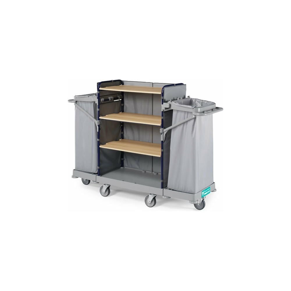 Тележка для отелей TTS GREEN HOTEL 925 0H003925 предназначена для уборки помещений. Позволяет держать под рукой необходимые принадлежности, поэтому практична в использовании. Благодаря высокой прочности прослужит долгое время. Оснащена колесиками, поэтому отличается мобильностью, за счет чего легко передвигается.